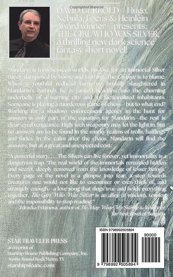 Mandarin is torn between worlds, his love for an immortal Silver barely dampened by booze and loathing. The Change is to blame. When a youthful redhead turns up brutally slaughtered in Mandarin’s bathtub, he is yanked headfirst into the churning underbelly of a warring city and its factionalized inhabitants. Someone is playing a murderous game of chess—but to what end? Working for a shadowy enforcement agency in the hunt for answers is only part of the equation for Mandarin—the rest is clear-eyed vengeance. High-tech weaponry may let the light in, but no answers are to be found in the murky realms of trolls, halflings and furies. In the calm after the chaos, Mandarin will find the answers, but at a great and unexpected cost.